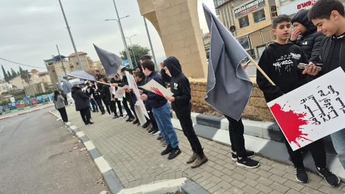 طلاب مدرسة الحلان الإعدادية في سخنين يتظاهرون ضد العنف والجريمة
