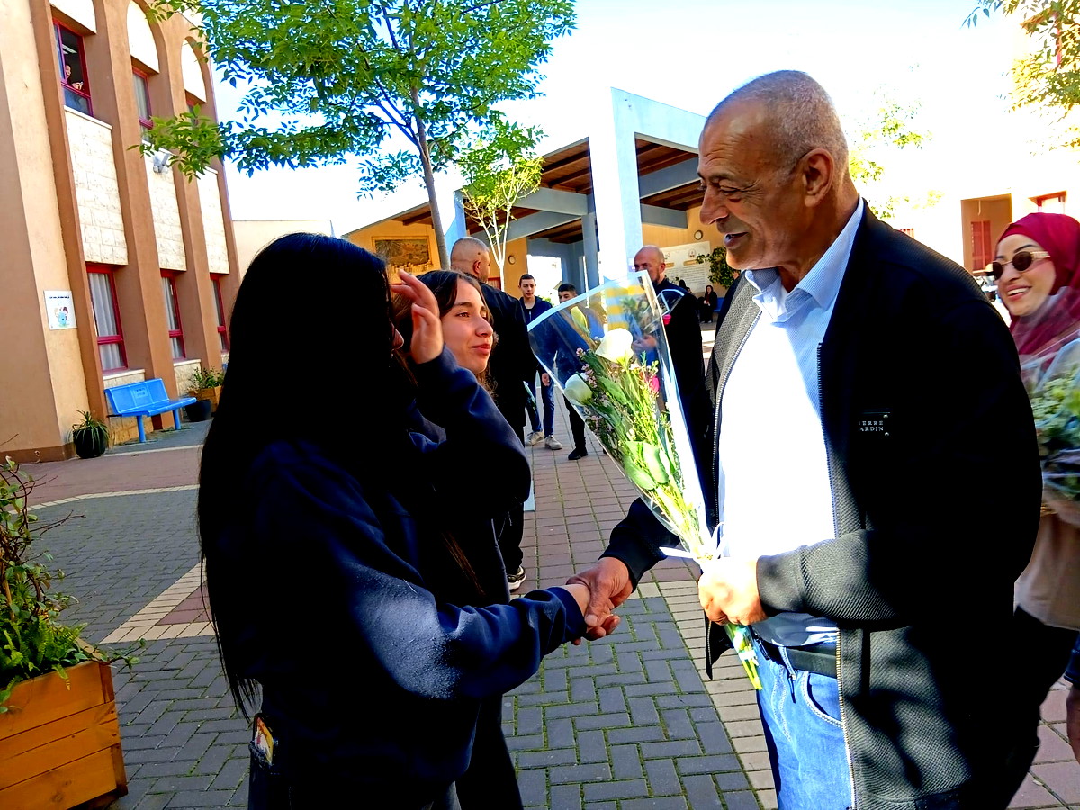 بعد الاعتداء العنصري: لجنة أولياء الأمور توزع الورود على طلاب مدرسة ابن خلدون في سخنين