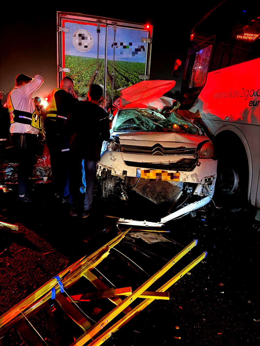 تفاصيل الحادث: وبحسب بيان "نجمة داود الحمراء"، وقع التصادم بين شاحنة، وحافلة ركاب، ومركبات خصوصية، حيث تحطمت المركبات الخصوصية وانحشرت بين الشاحنة والحافلة.