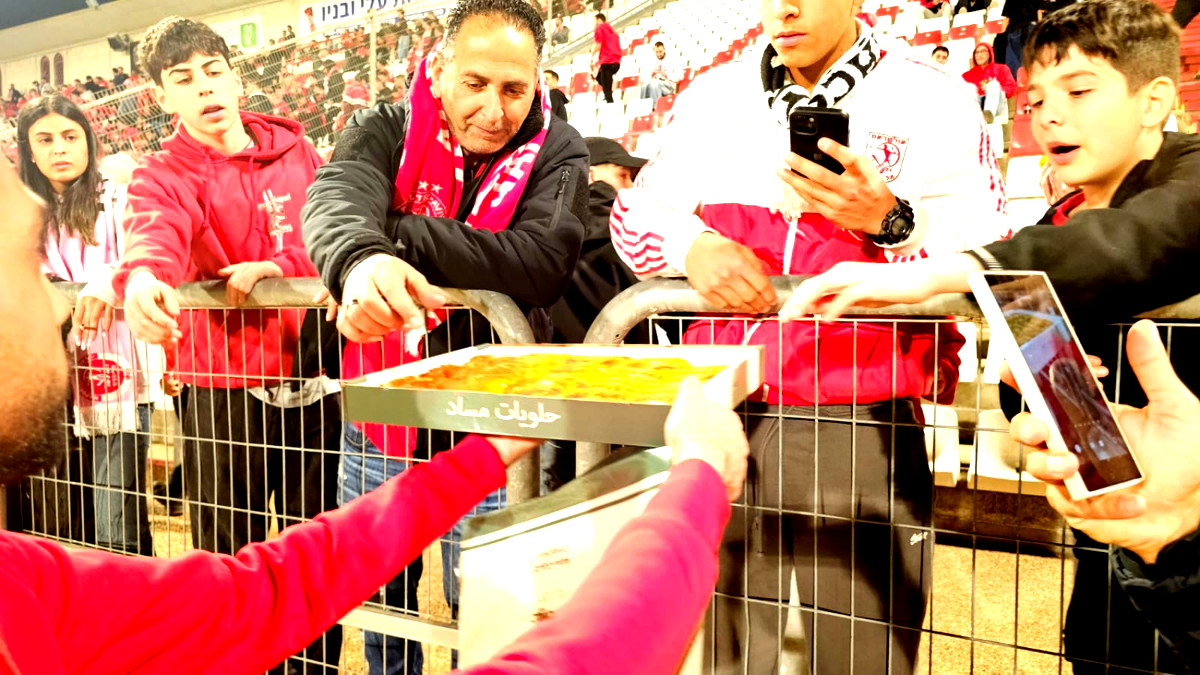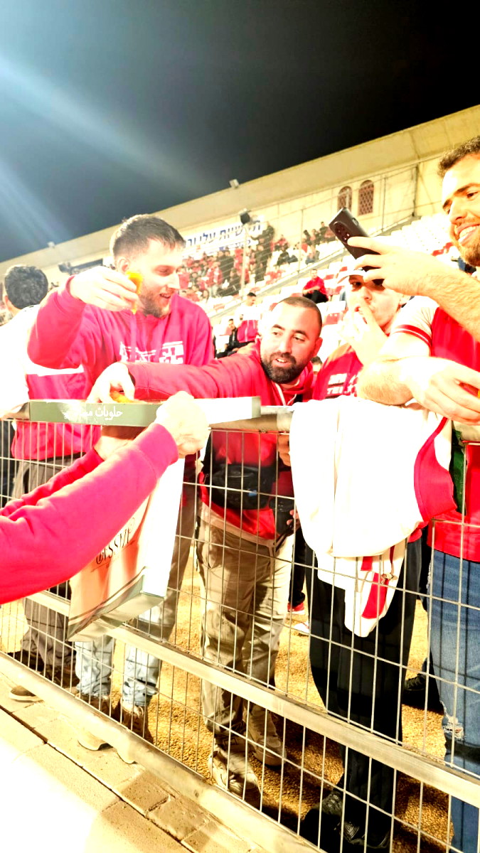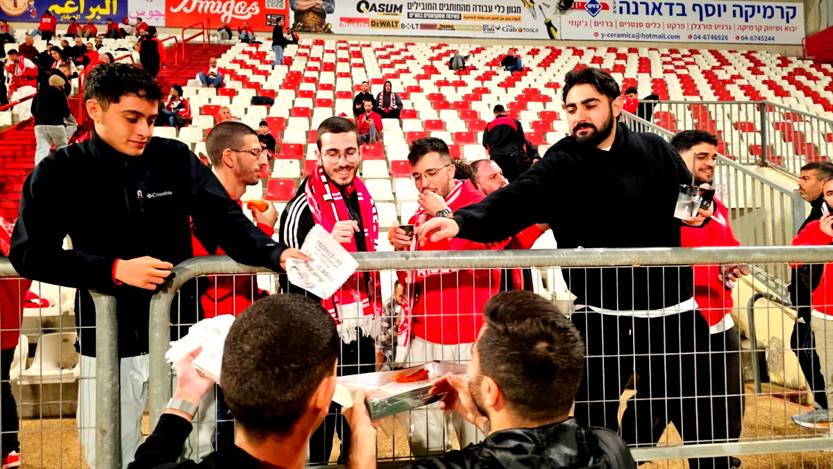 لفتة طيبة في استاد الدوحة: "الجبهة" و"الشبيبة الشيوعية" تستقبلان جمهور هبوعيل تل أبيب بتوزيع الحلوى