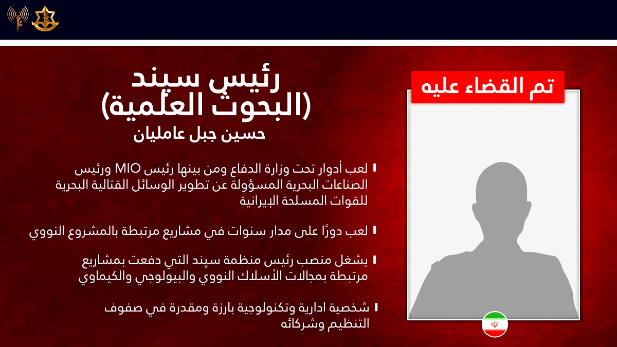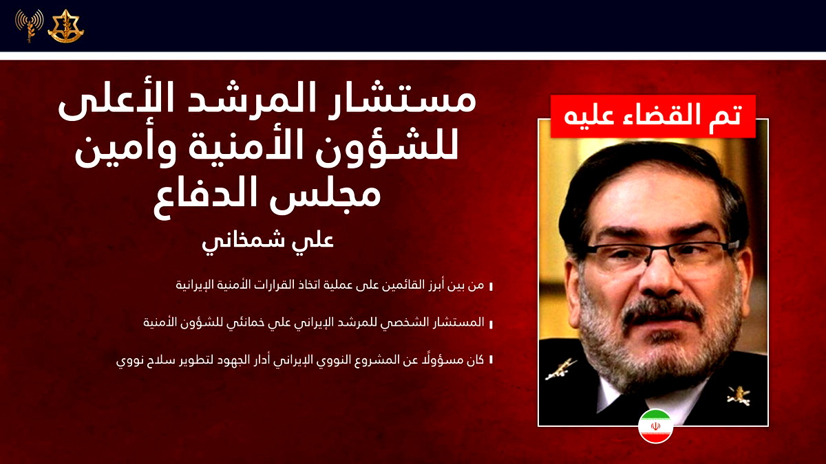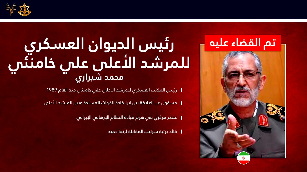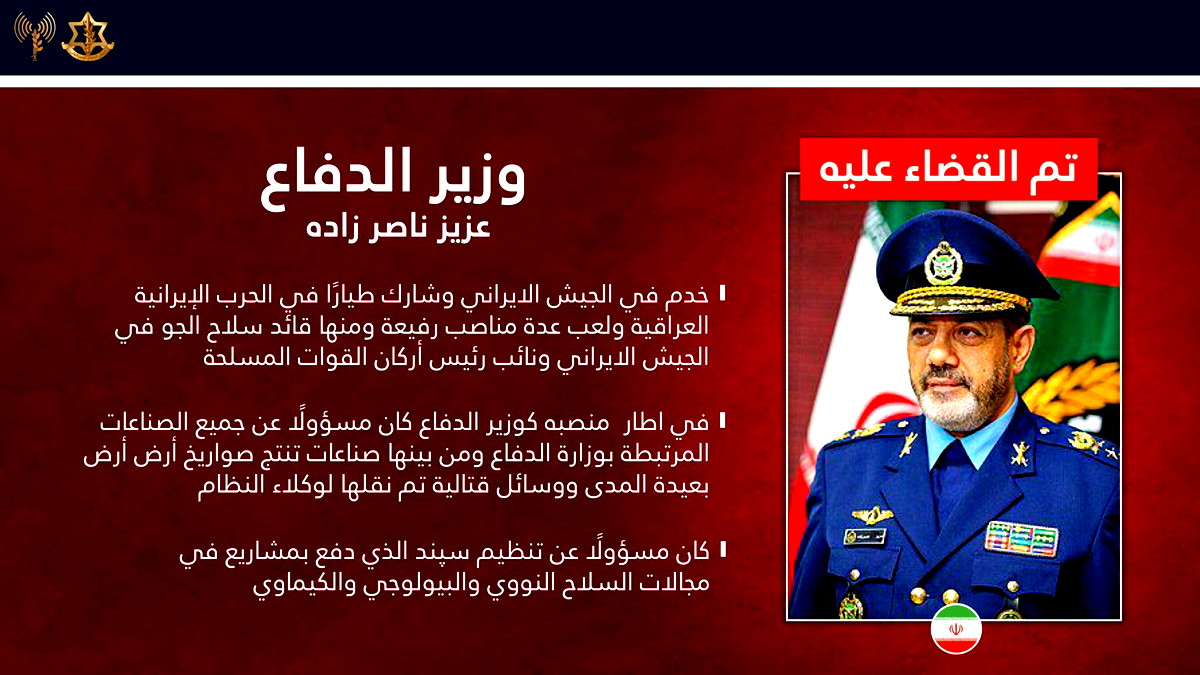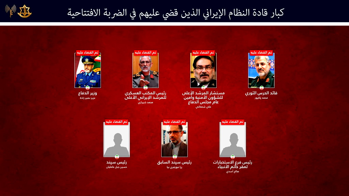 قائمة القيادات التي تم تأكيد تصفيتها: وأكد الجيش الإسرائيلي أنه تم القضاء على قمة القيادة الأمنية الإيرانية، والتي شملت: