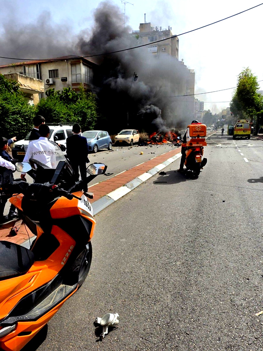 أضرار مادية واحتراق مركبات نتيجة سقوط شظايا في 7 مواقع وسط إسرائيل