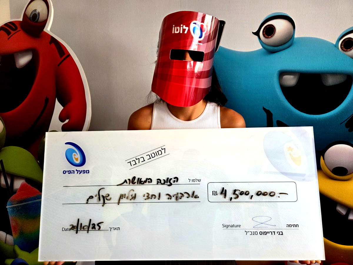 بعد يومين من سحب اللوتو الذي منحها الجائزة الثانية في مسار "دابل لوتو" بقيمة 4.5 مليون شيكل، وصلت الفائزة السعيدة إلى مقر مؤسسة "مفعال هبايس".