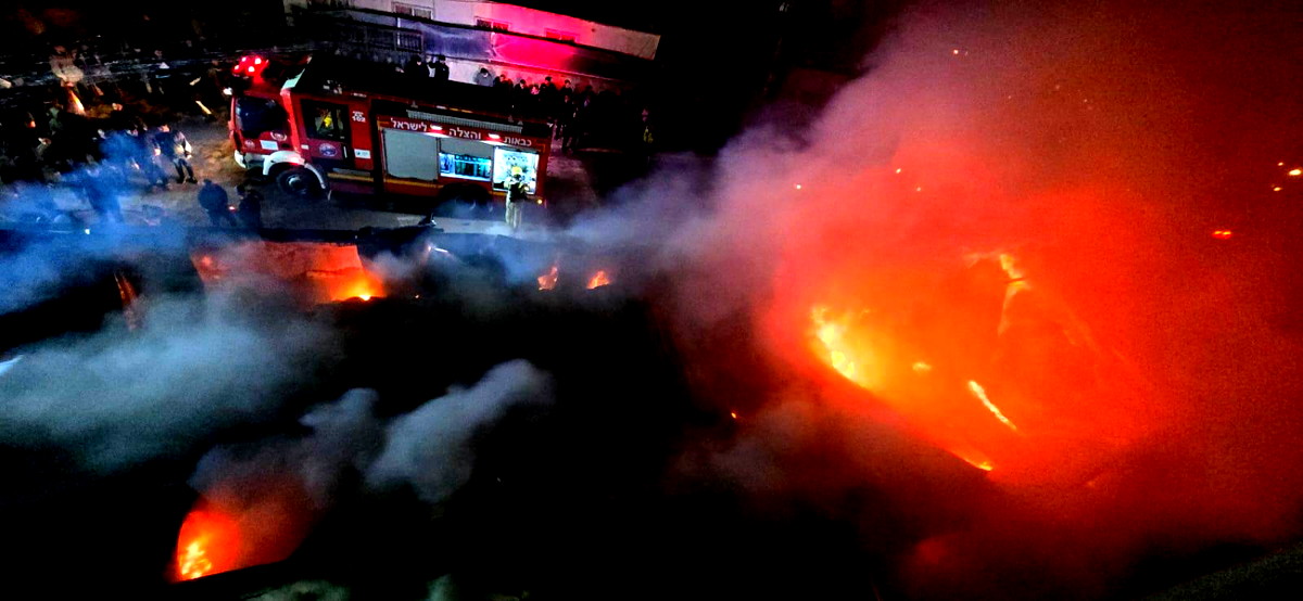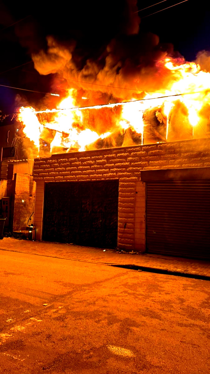 فيديو - حريق في مبنى مكون من طابقين في الكسيفة بالنقب