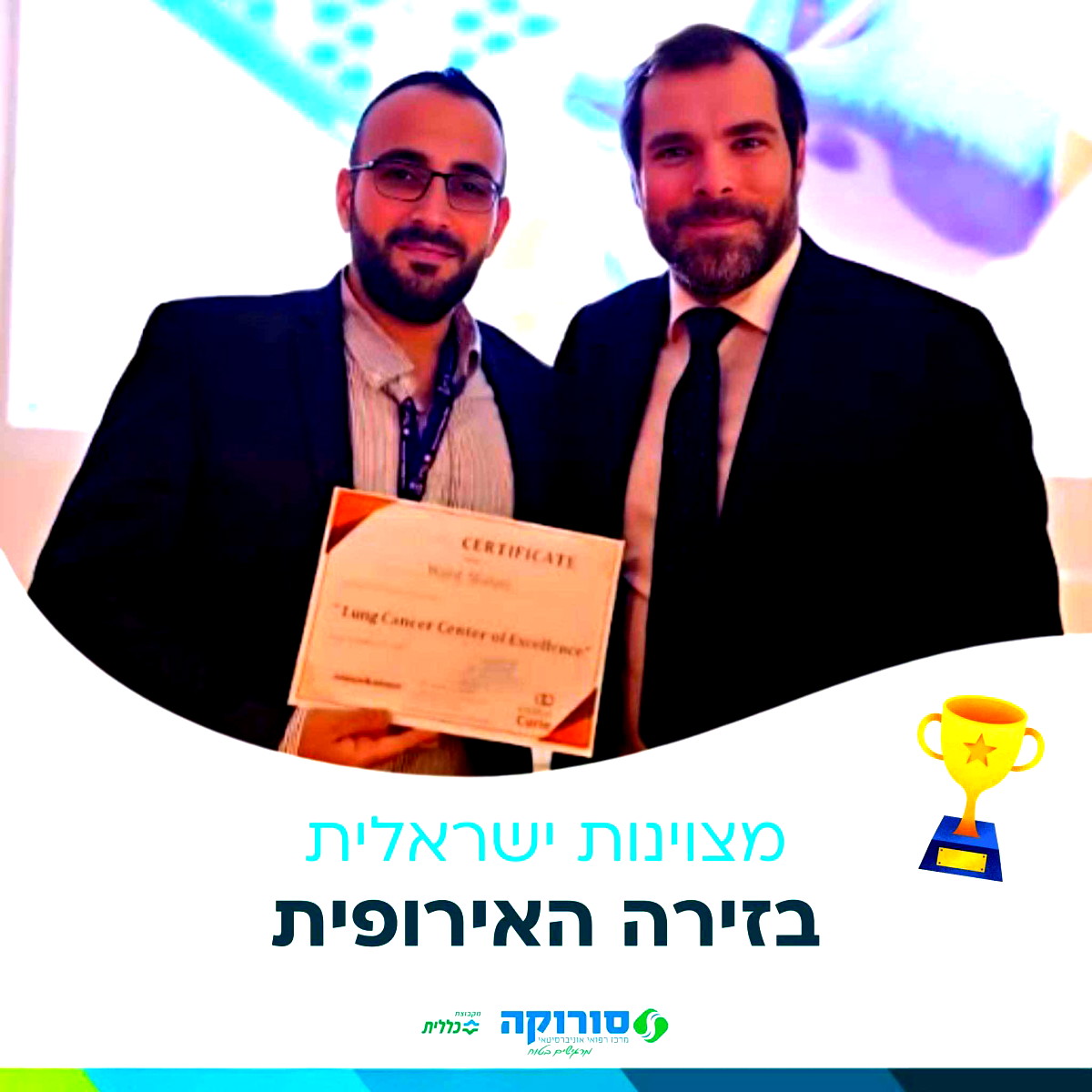 تم مؤخرا ً إختيار الدكتور وليد شلاعطة المختص في علم الاورام السرطانية في مستشفى سوروكا كأحد أبرز الاطباء الشباب المتميزين في الإتحاد الاوروبي في إدارة وعلاج سرطان الرئة . تم إختياره الوحيد من البلاد من قبل اللجنة الاوروبية (Lung Cancer Medical Affairs EMEA) ، للمشاركة في برنامج التميّز في فرنسا الى جانب نُخبة من الأطباء الرواد من مختلف أنحاء اوروبا وذلك إستنادًا الى خبرته العملية والعلمية ،