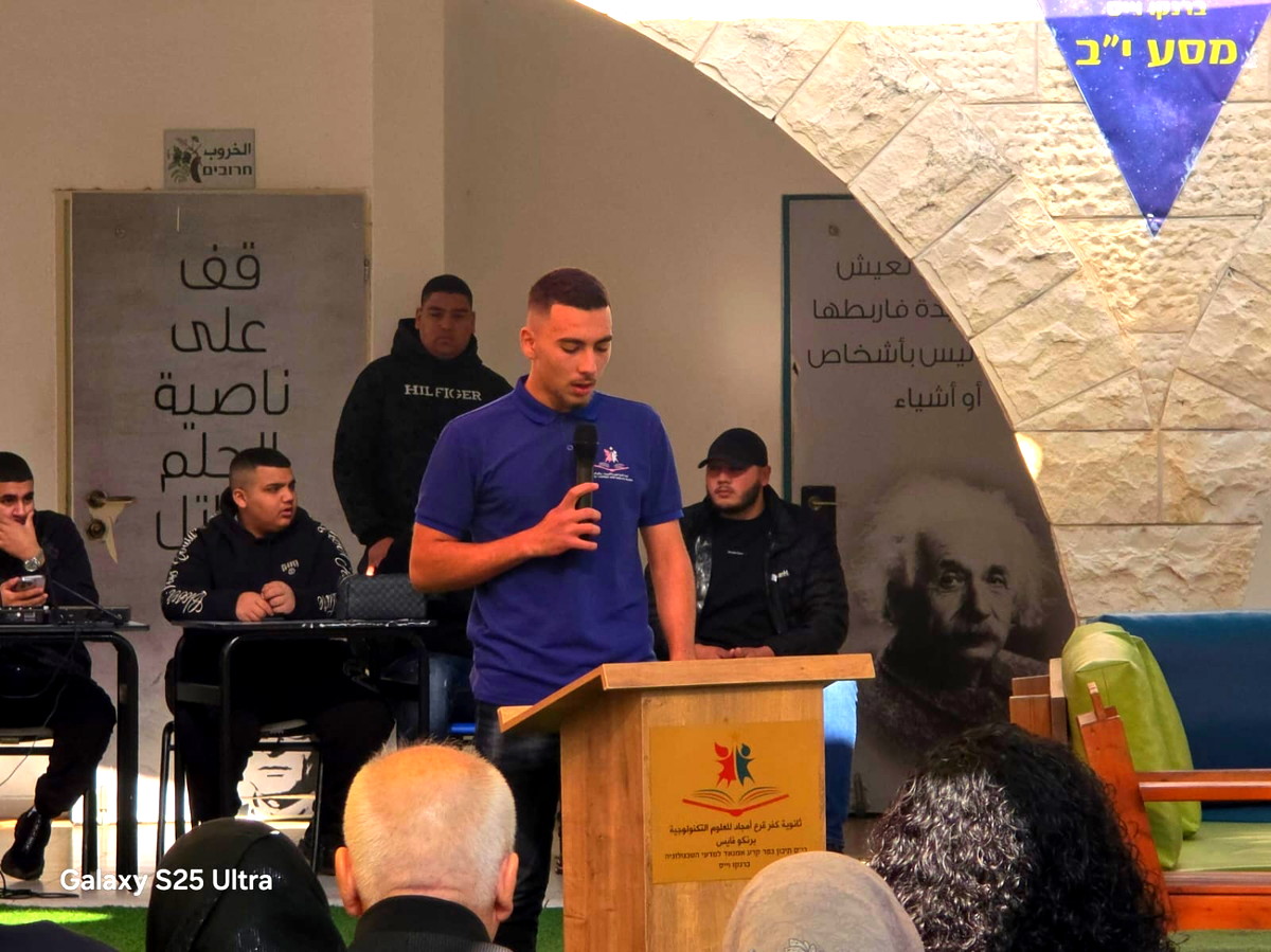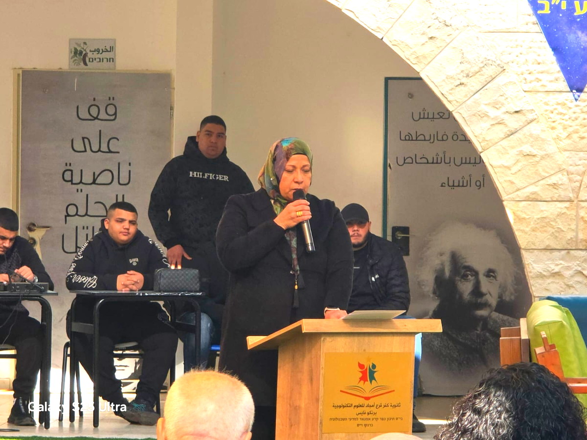 ثم بدأت المديرة عنات عزب بإلقاء كلمتها المؤثرة معبرةً عن عُمق الفقدان وصعوبته والأثر الذي تركه الطالب محمد مرزوق في قلوب وأرواح طلاب وطاقم المدرسة، ومن ثم ألقى رئيس مجلس الطلاب عماد مصاروة كلمته المعبرة باسم الطلاب تلته الطالبة ليان كبها ومن ثم رئيس البلدية فراس بدحي بكلمته المعبرة والمؤثرة شكر من خلالها عائلة فقيدنا على موقفهم المشرف والمؤثر في الصبر والخلق الحسن وكذلك شكر إدارة المدرسة بطاقمها على قيادة وإدارة الحدث الصعب ليكملوا رسالتهم التربوية تجاه الطلاب خاصة والمجتمع عامة، مشيرًا إلى أهمية هذه المبادرة المدرسية والتربوية التي تعيد الاعتبار لقيمة الإنسان والأخلاق في مجتمعنا. وأكد بدحي أن التربية الحقيقية تبدأ من المدرسة، وأن غرس القيم، وعلى رأسها الأخلاق، واحترام الآخر، ونبذ العنف، هو الطريق الأهم لبناء مجتمع آمن وسليم، داعيًا إلى تحويل المدارس إلى منارات للتربية على الحوار، والمسؤولية، والانتماء.