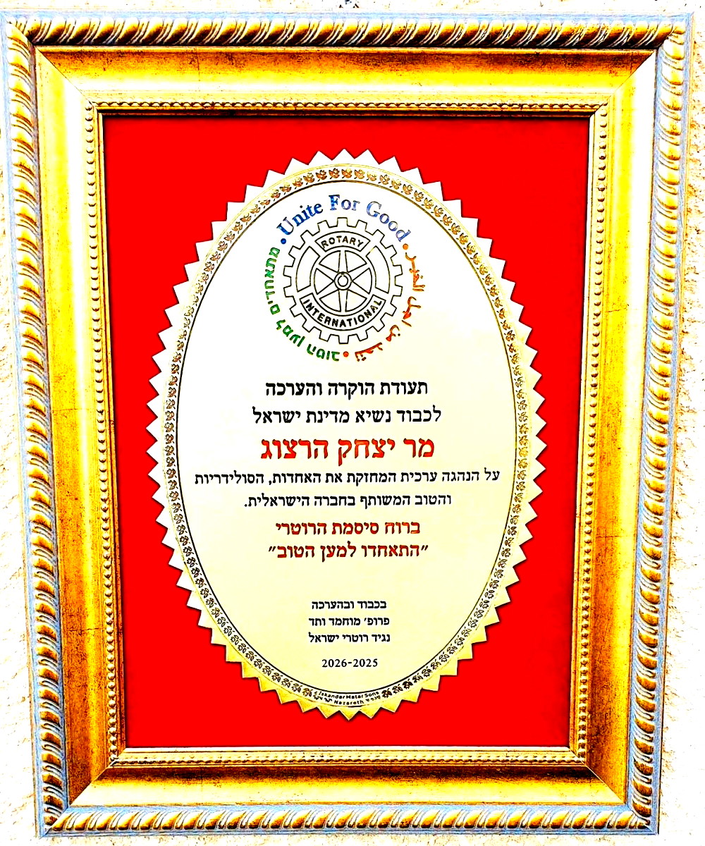 وهنا تبيّن التشابه الكبير – تطلعات العميد لتعزيز الروابط بين الطبقات والقطاعات المختلفة في المجتمع الإسرائيلي تتردد تقريباً كلمة بكلمة مع رؤية رئيس الدولة يتسحاق هرتسوغ. كلاهما يحلمان بمجتمع تتحول فيه خطوط الانقسام إلى جسور تفاهم خاصة وعميد روتاري إسرائيل عندما تولى منصبه في بداية شهر تموز 2025، كان قد حدد لنفسه هدفاً واضحاً: تقريب القلوب بين أبناء الطوائف المختلفة وإعادة النسيج الاجتماعي في المجتمع الإسرائيلي، مع رسم مسار عمل لرأب الصدع وفي مقر رئاسة الدولة وجد مؤسسة تشاركه هذا الحلم السامي ذاته.