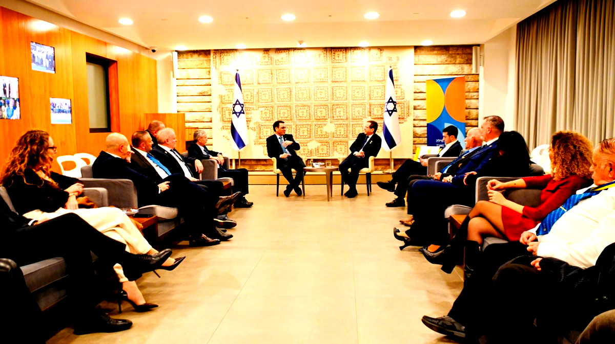 بعد ذلك، توجه العميد وطاقمه إلى مقر رئيس الدولة. هناك، استقبل مستشارو الرئيس أولاً أعضاء الوفد وعرضوا أمامهم الجهود الدؤوبة لرئيس الدولة، يتسحاق هرتسوغ، لسد الفجوات، تطبيب الانقسامات وتقليل الاستقطاب في المجتمع الإسرائيلي.