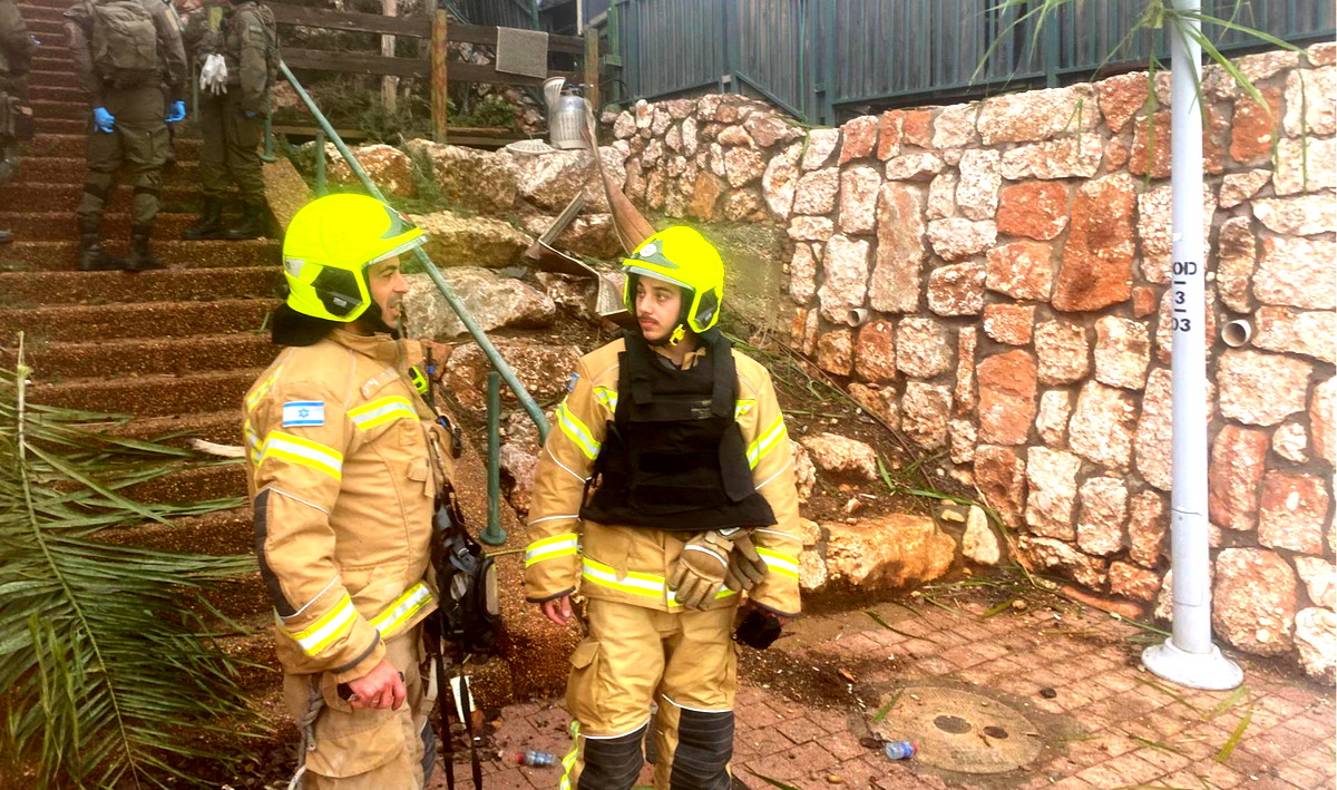 وتعمل طواقم الإطفاء والإنقاذ على تمشيط منطقة سكنية بعد سقوط شظايا صاروخية، حيث تتعامل أيضًا مع تسريب غاز ناجم عن إصابة أسطوانات الغاز جراء الشظايا في المكان.
