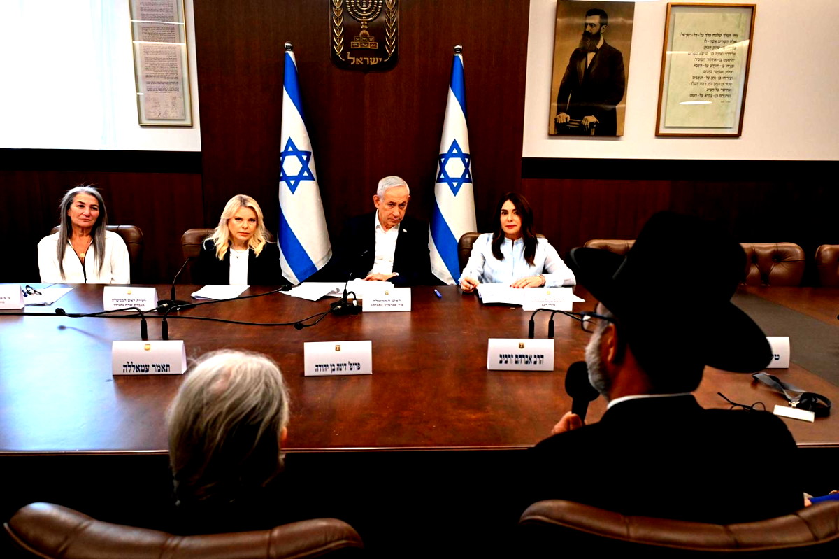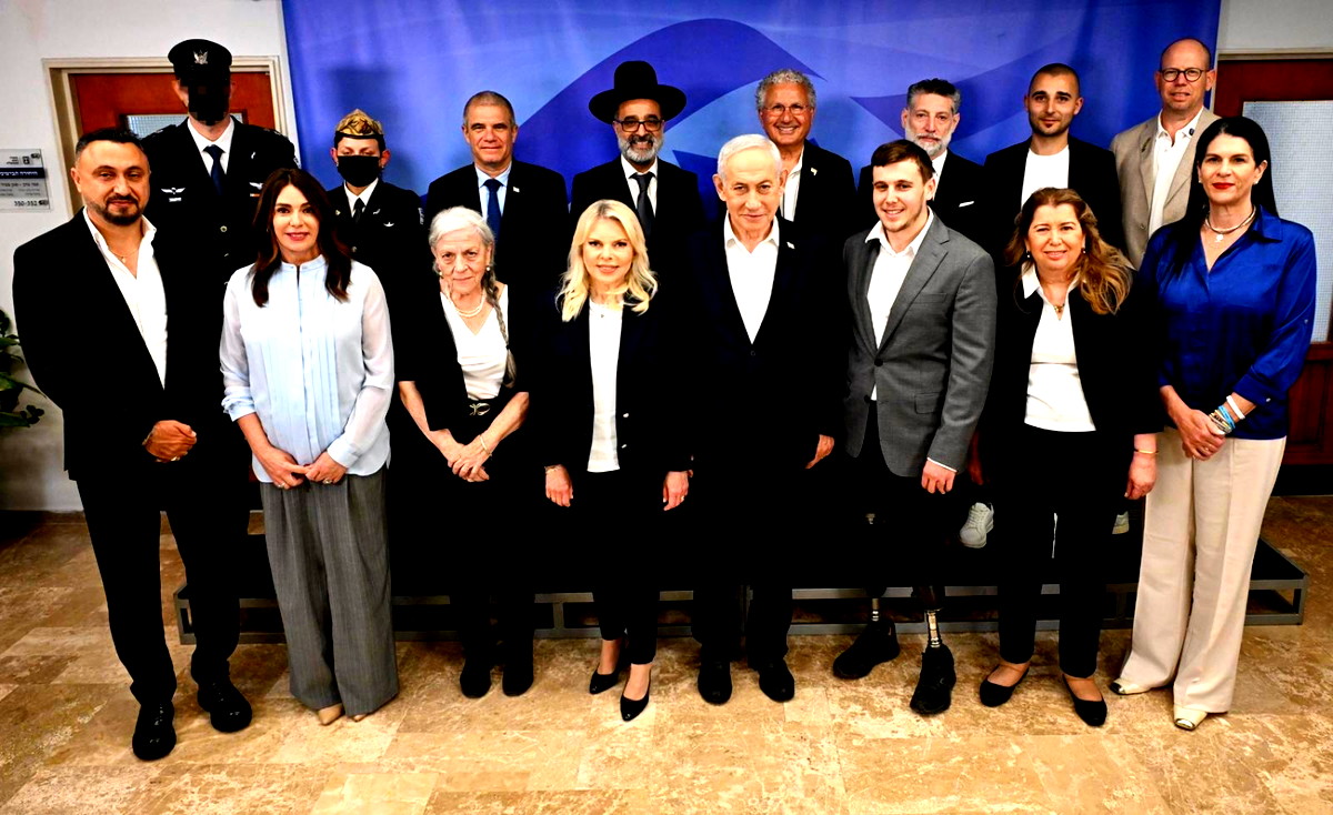 اجتمع رئيس الوزراء بنيامين نتنياهو، والوزيرة ميري ريغيف، المسؤولة عن احتفالات عيد الاستقلال، وزوجة رئيس الوزراء سارة نتنياهو، مع حاملي الشعلة قبيل الاحتفال بالذكرى الثامنة والسبعين لعيد الاستقلال.